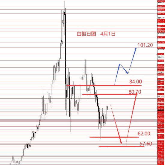黄金三月也正如预期从5370跌至4780,最低4100附近,黄金中线波段思路正确。从图形来看,黄金四月区间震荡的概率相对较大些,区间先关注5000至4270,本月二次下探4270的概率相对较大些,只是不确定是先测试了5000再跌,还是连4780都上不去先下探4270再向上测试5000区域。今日没有具体操作建议,只有一个大概框架,重点关注周五非农数据,下周一行情明朗些会再更新文字稿件,大家敬请期待。